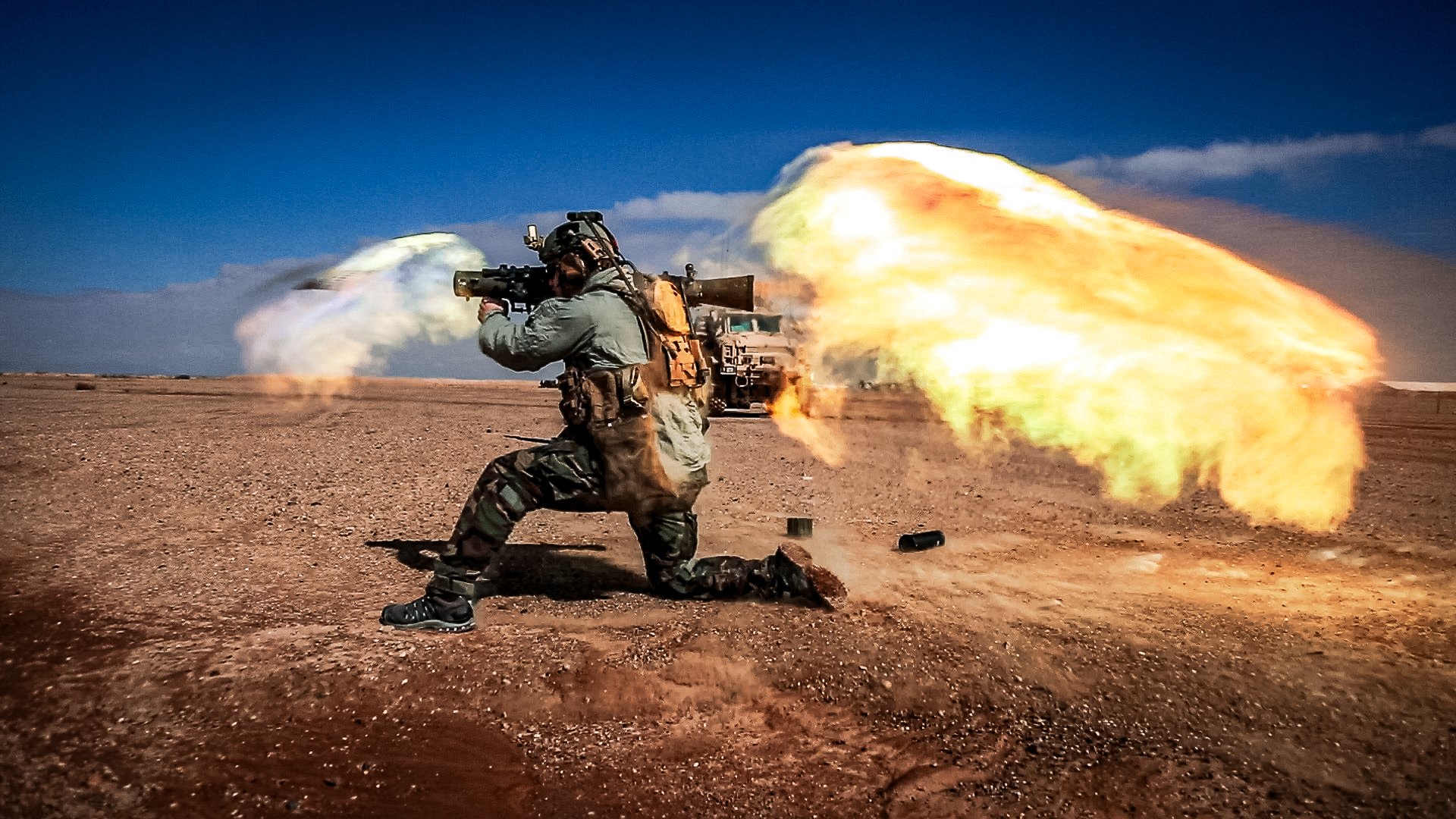 A US Army soldier fires a Carl Gustaf recoilless rifle during training at an undisclosed location, Nov. 14, 2019. US Army photo by Staff Sgt. Alex Manne.